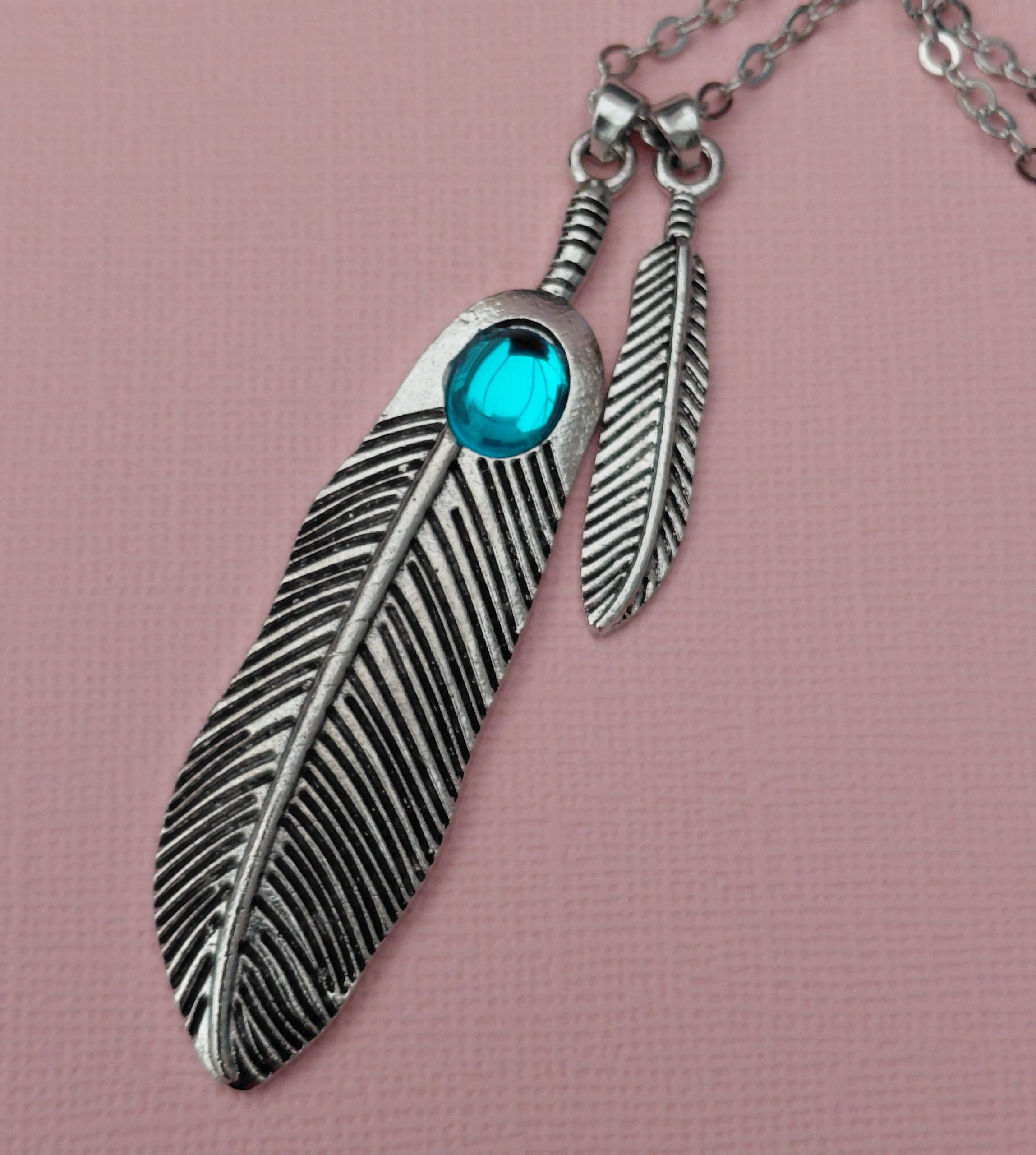 This necklace has been lovingly handcrafted by me to represent the feather necklace worn by Claire Redfield in Resident Evil REmake 2. The necklace is thought to attract good luck and keeps you safe from any Tyrants who may be stalking you. Obviously a very important survival item for the zombie apocalypse.