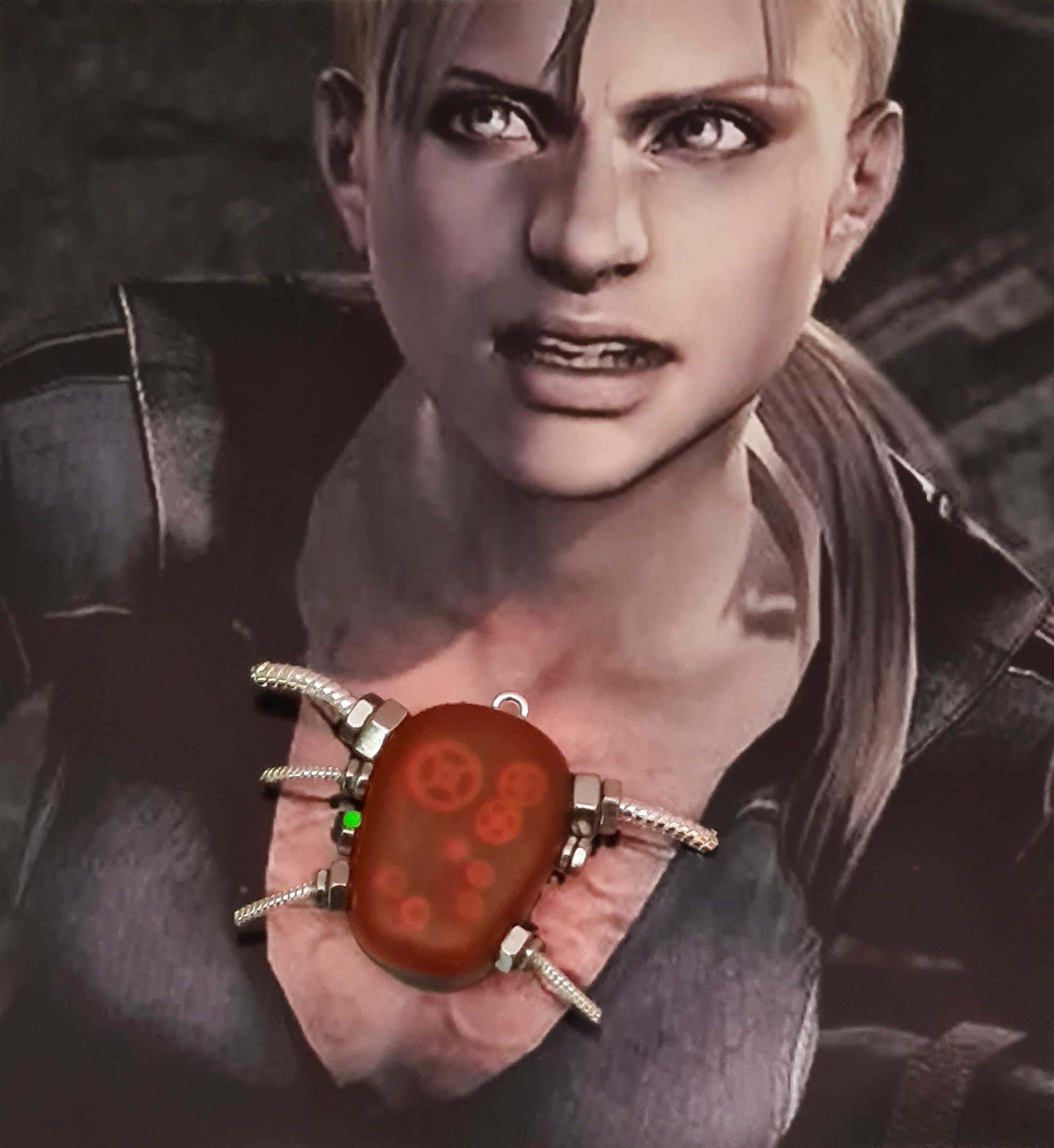 This necklace has been lovingly handcrafted by me to represent the P30 Injector device worn by Jill Valentine in Resident Evil 5.