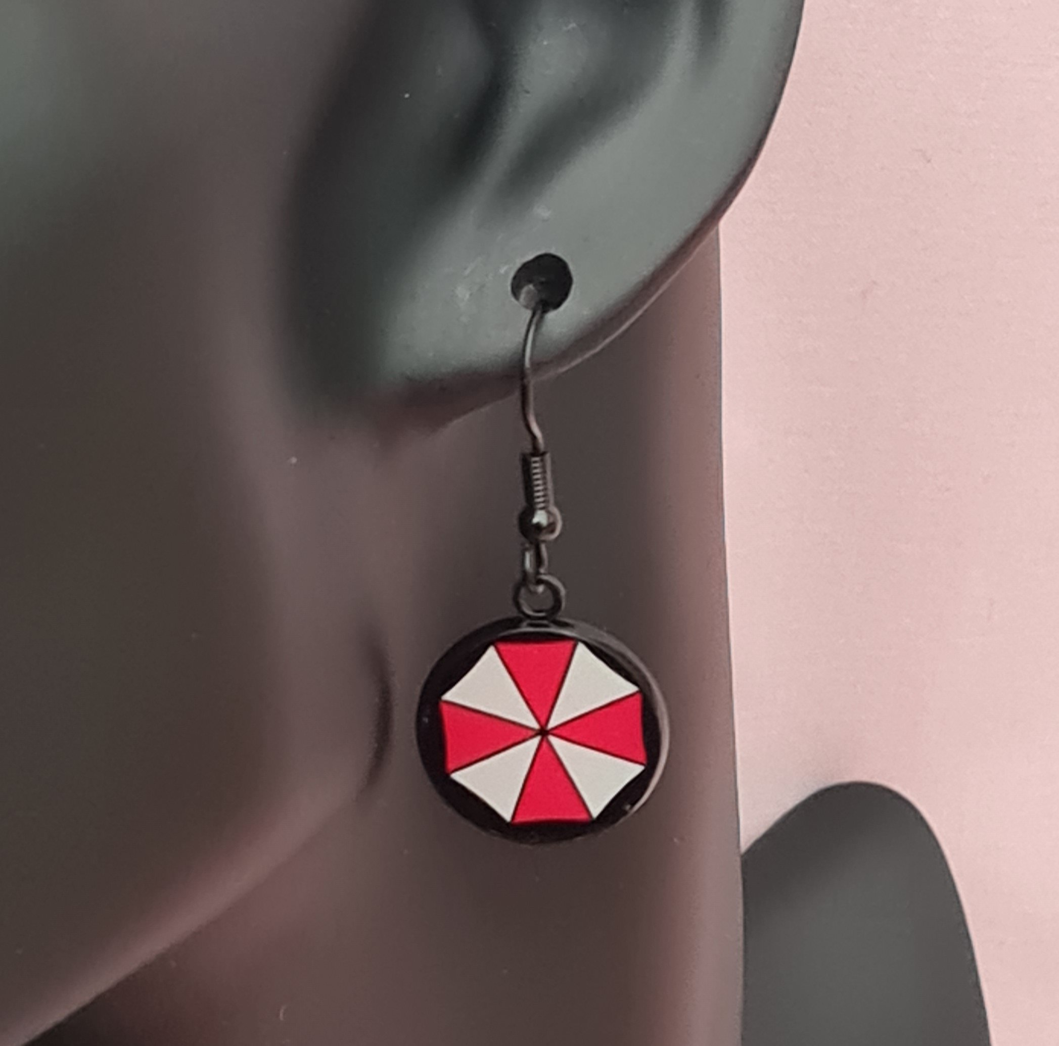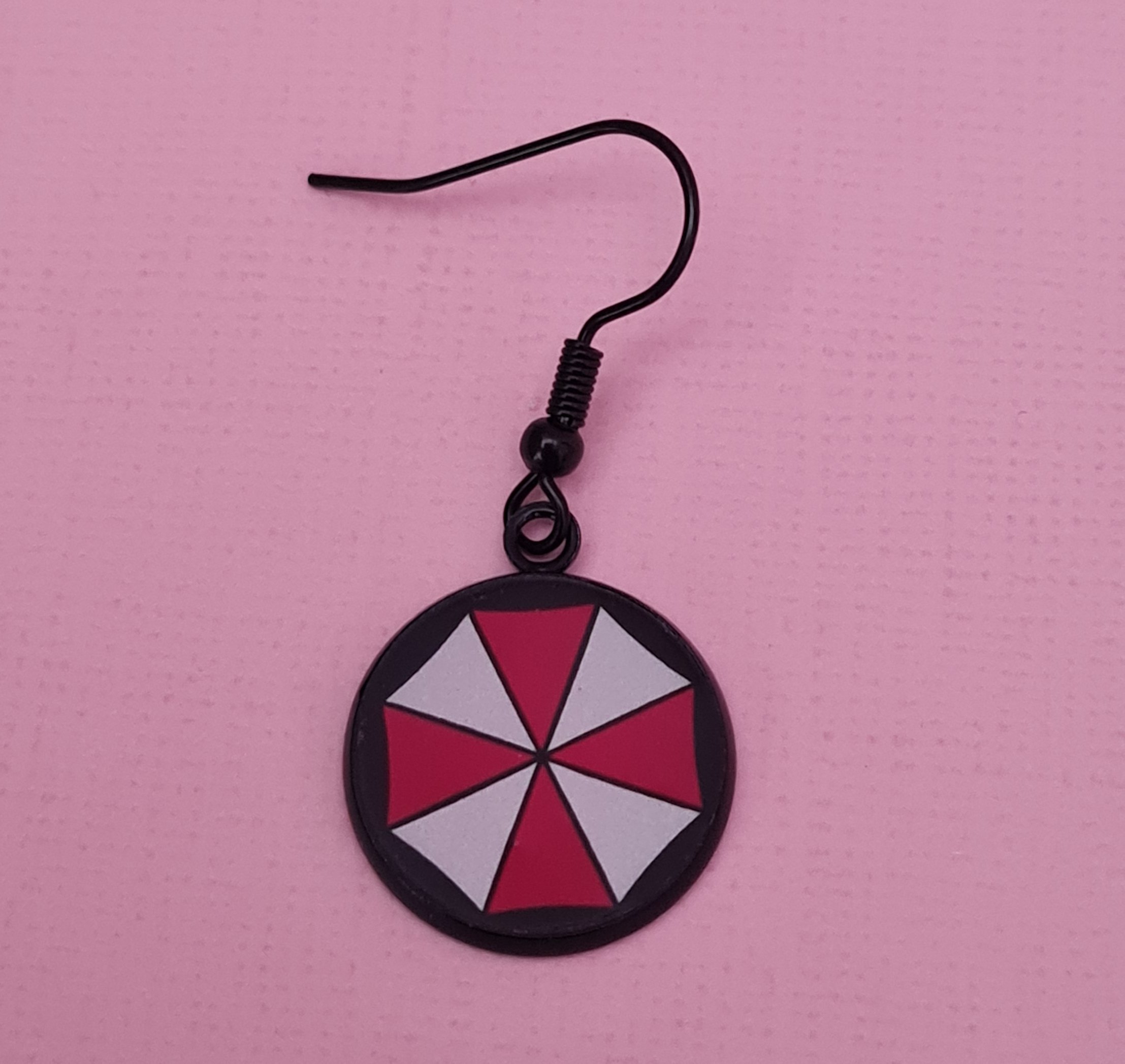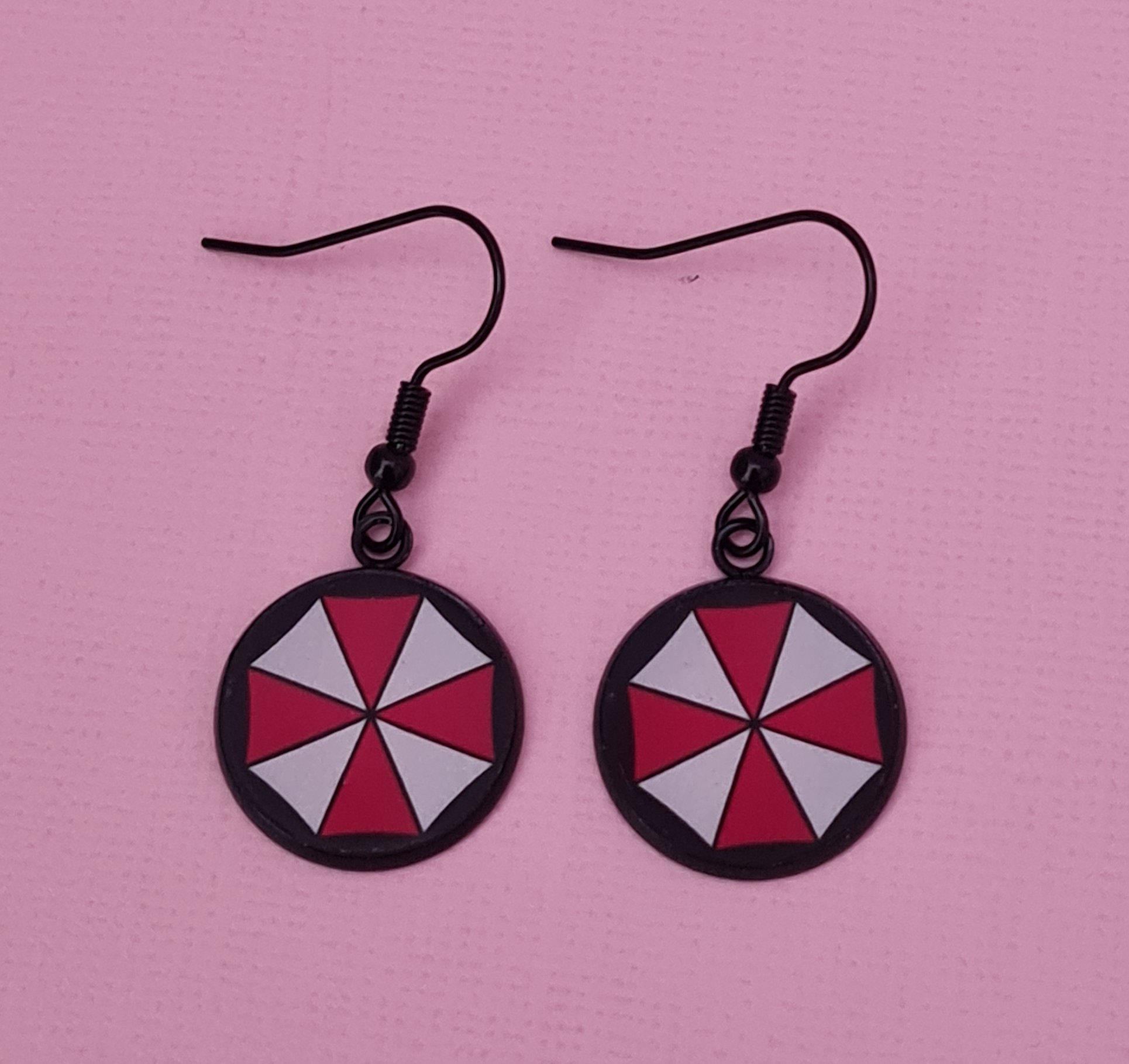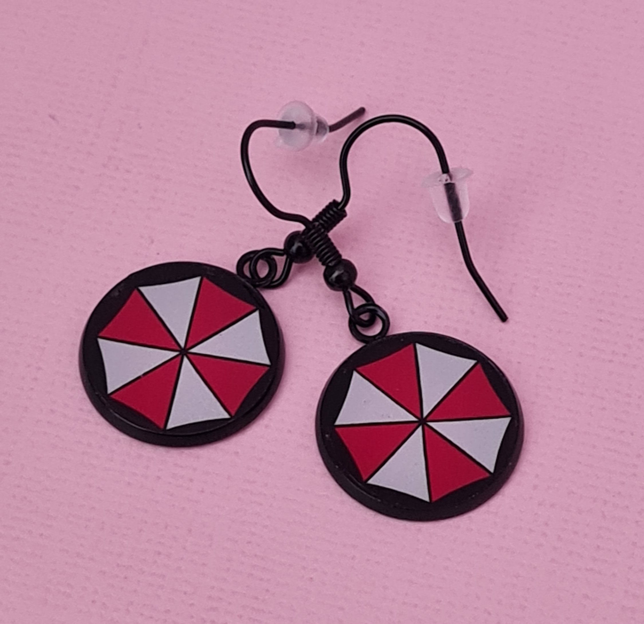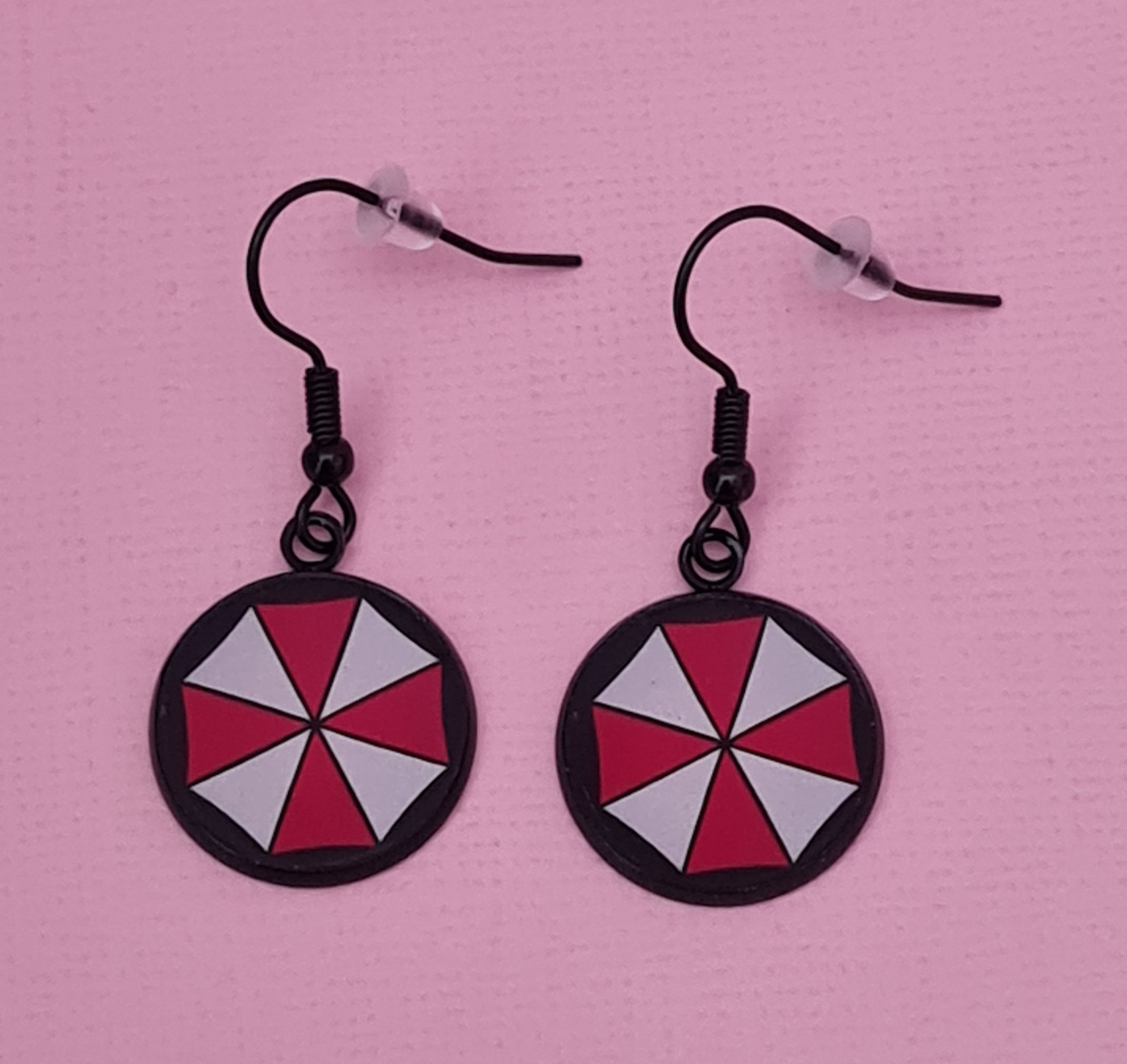 These earrings have been lovingly handcrafted by me to honour the Umbrella Corporation.