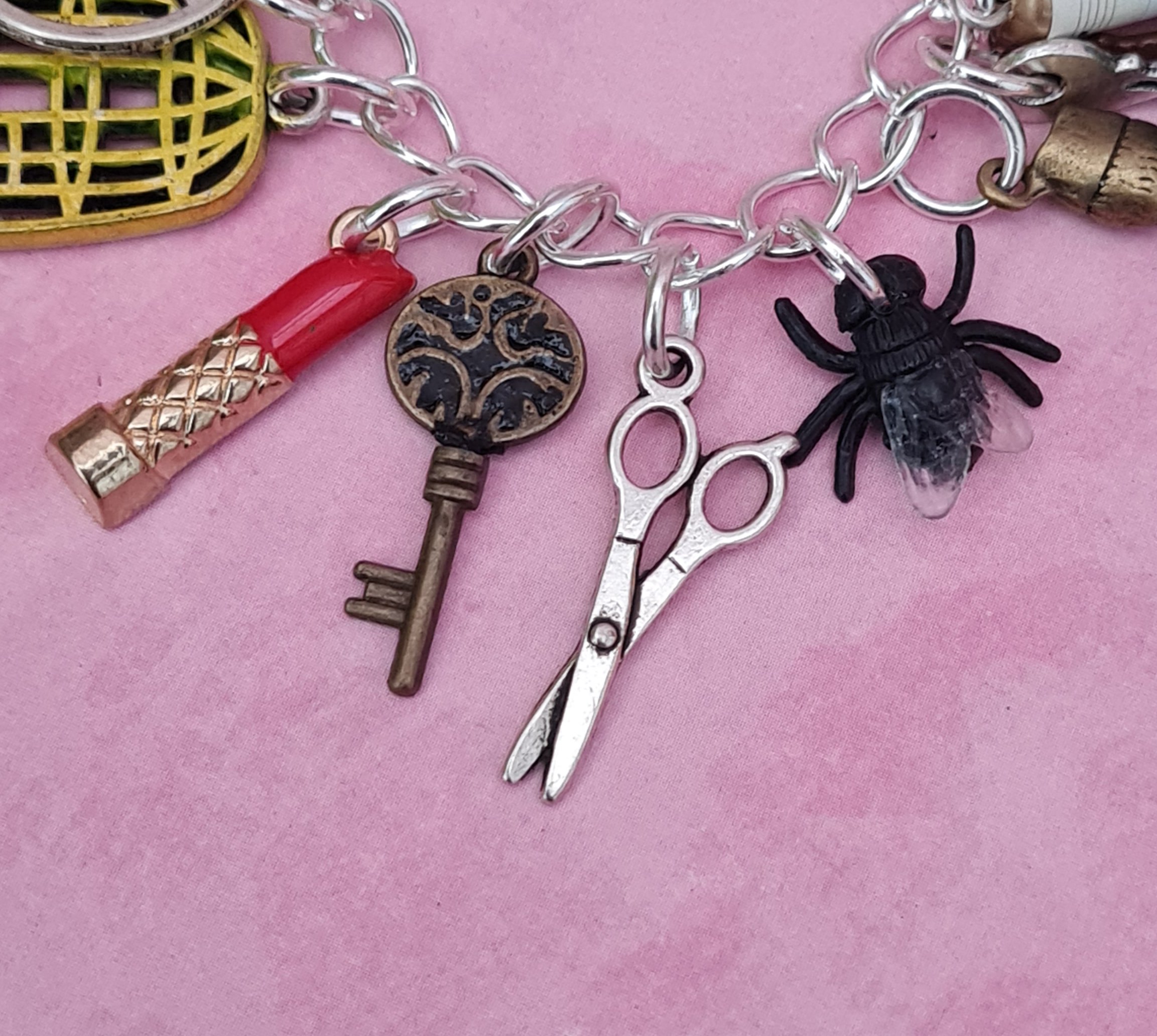 Please note that this charm bracelet is limited to 1 piece only, it has been made from the leftover charms I had left after discontinuing the actual Village of Shadows charm bracelet I sold previously. Once it is sold I will not be making this bracelet again.