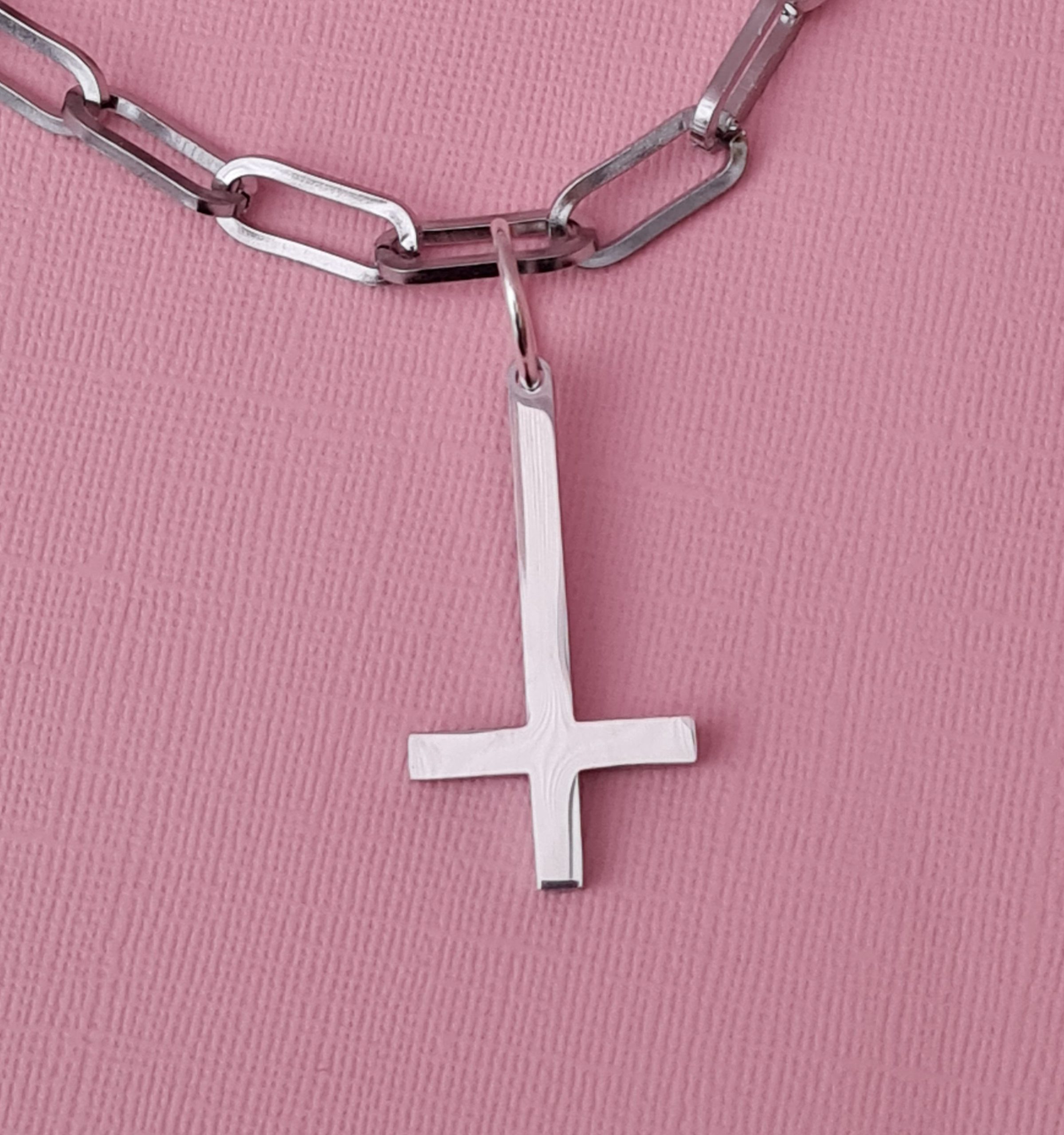 The inverted cross pendant measures approx 42mm x 23mm.